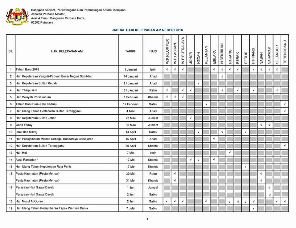 Related : Cuti Umum Johor 2018 - Laman ini mengandungi kalendar cuti umum untuk tahun 2018 di malaysia..